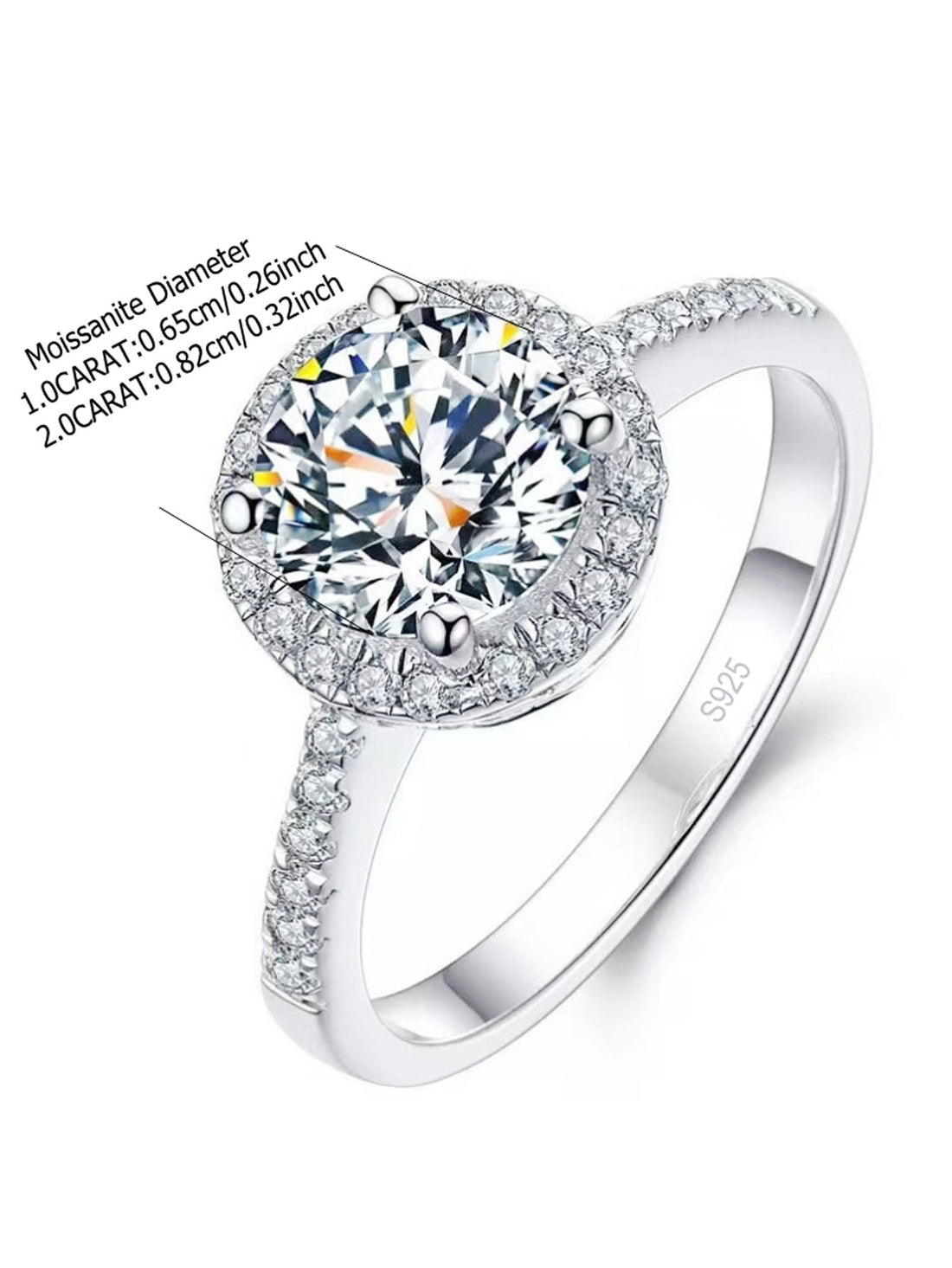 S925 Sterling Silver Moissanite Rings Round Charm Design for Wedding or Engagement Stylish Jewelry